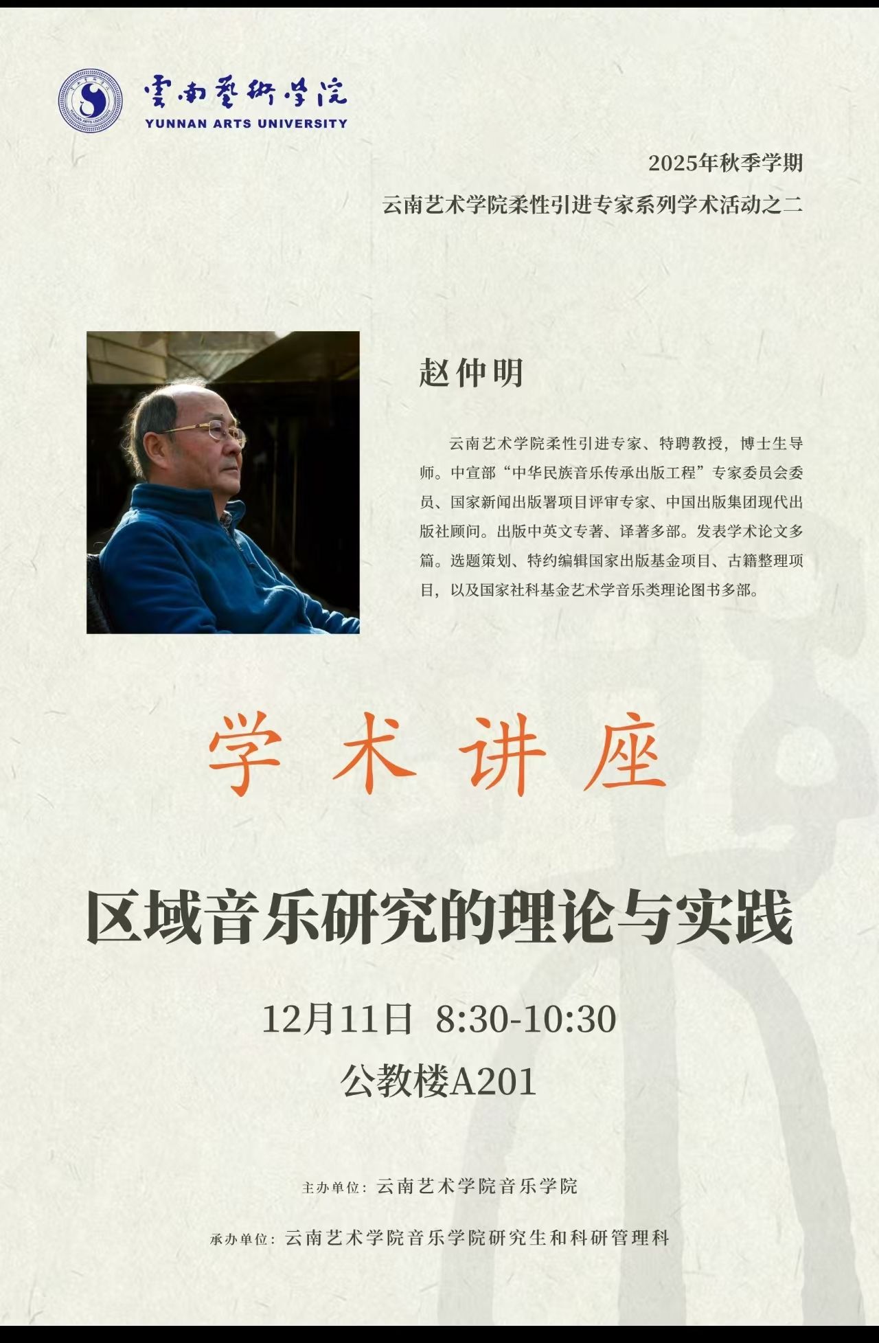 2025年秋季学期滚球买球的app官网柔性引进专家系列学术活动之二——赵仲明:区域音乐研究的理论与实践