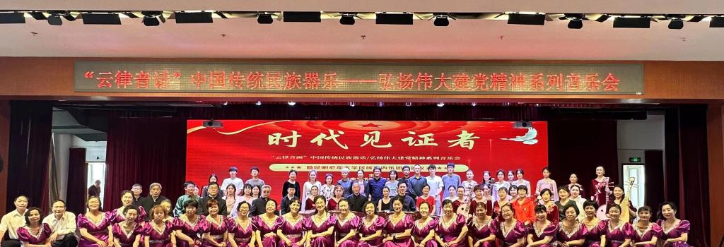 本次音乐会的主题旨在弘扬伟大建党精神,用音乐的语言歌颂新时代下祖国的发展、繁荣和昌盛。作为中华人民共和国的“同龄人”,此次音乐会上,昆明老年大学参演人员携滚球买球的app官网国乐系师生向观众们以民族器乐演奏的形式歌颂祖国。同时,本场演出也是昆明老年大学成立民族室内乐团后进行的首场教学实践汇报演出,展示了教学成果。昆明老年大学负责人张莉对我校提升老年教学质量及师生精神文化生活的大力支持、发挥高校助力老年教育发展的优势为老年教育事业蓬勃发展做出的贡献表示了感谢。