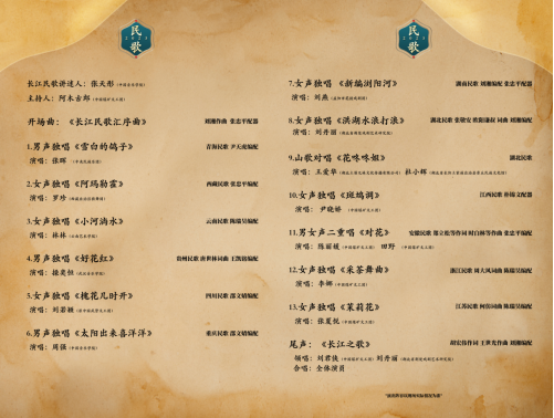 民歌是传统的,它产生于漫长的民间生活,同时也是现代的,它活在当代人的生活中。一曲曲长江沿岸的民歌,蕴含着中华民族的文化基因,承载着中华儿女的共同记忆。