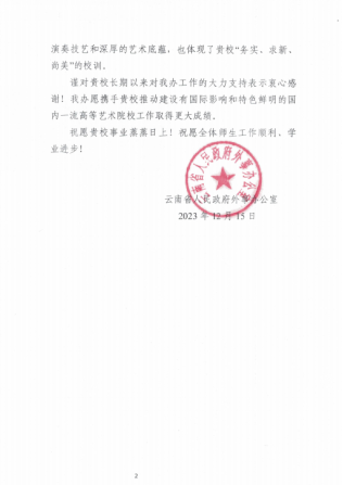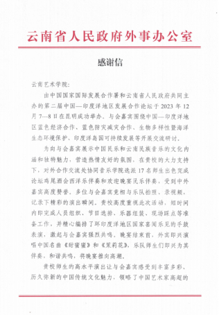 云南省人民政府外事办公室致滚球买球的app官网感谢信