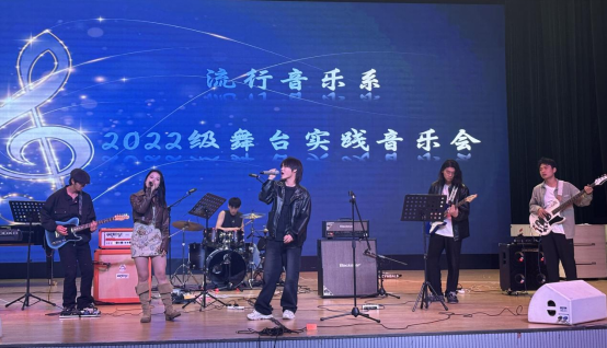 流行音乐系,学生通过舞台实践演出和撰写实践报告,旨在提高学生的演唱和演奏能力。流行演唱班的学生们分组完成重唱作品。流行演奏班的学生们则根据课程内容,完成乐队合奏曲目的排练和演出。整个实践周包括作品指导、排练、联排走台,最终以音乐会演出和报告撰写作为总结。这一系列活动不仅锻炼了学生的合作和舞台表现能力,也加深了他们对流行音乐的理解和实践经验。