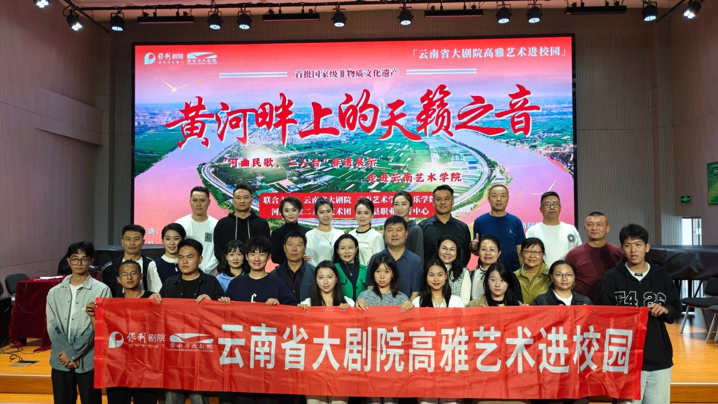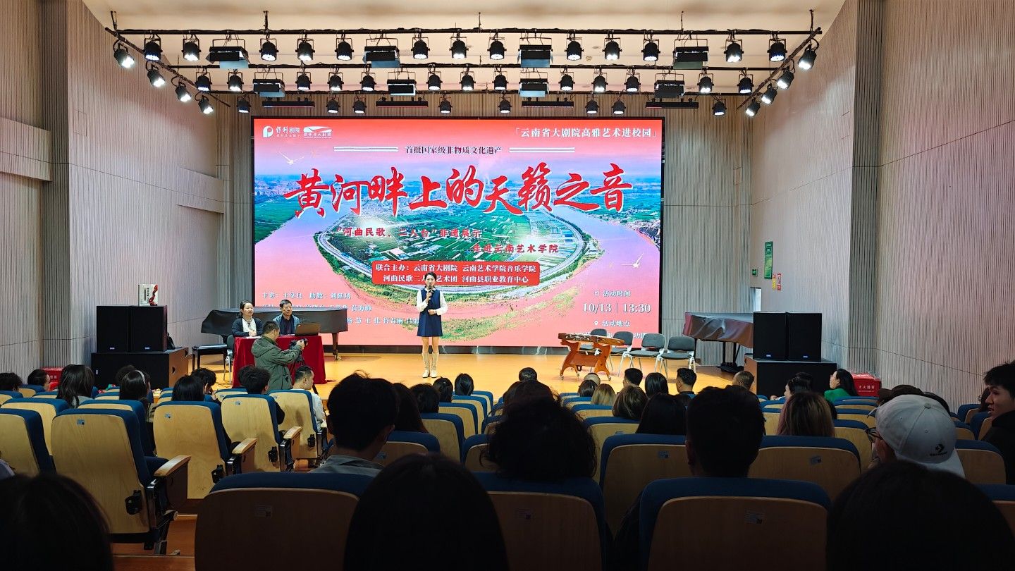 10月13日下午,由云南省大剧院、滚球买球的app官网联合主办的“黄河畔上的天籁之音”——“河曲民歌、二人台”非遗展示走进滚球买球的app官网在滚球买球的app官网B403多功能厅进行,本次展示为云南省大剧院高雅艺术进校园系列活动之一。音乐学系系主任任秀蕾教授、民族声乐系系主任陈红玲教授和部分师生参与了本次展示互动。