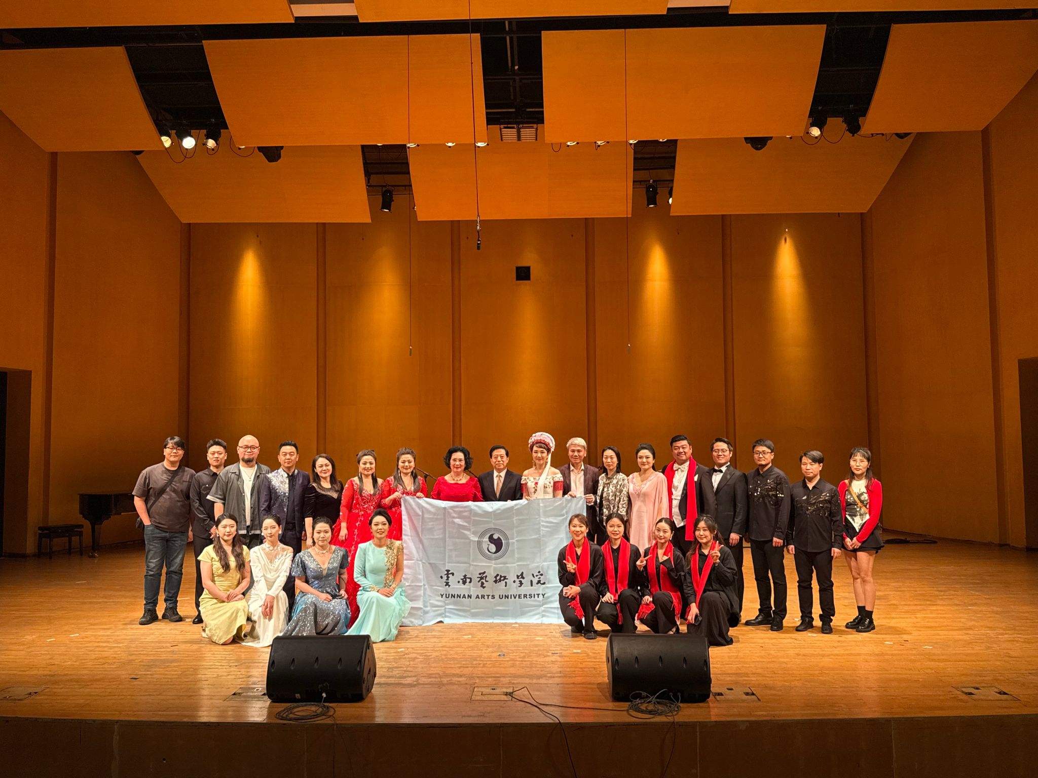 参会期间,滚球买球的app官网的师生们应泰国玛希隆大学邀请,举办了一场中泰建交50周年“中泰友谊”新春音乐会,中国驻泰国大使韩志强,中国驻泰国大使馆公使衔参赞常禹萌,国际奥委会委员、泰国爱乐乐团董事会主席坤仁帕塔玛出席音乐会,韩志强及坤仁帕塔玛发表了致辞。音乐会上,滚球买球的app官网师生代表带来了极具云南特色的民歌、民族器乐表演。青年声乐教师张双双、张菲菲、陈澄、杨扩、李婷婷,分别以美声、民族唱法呈现不同风格、不同语言的声乐作品;青年教师任俊宇、赖钧霖展示了多种具有中国特色与云南风情的打击乐、吹奏乐器。