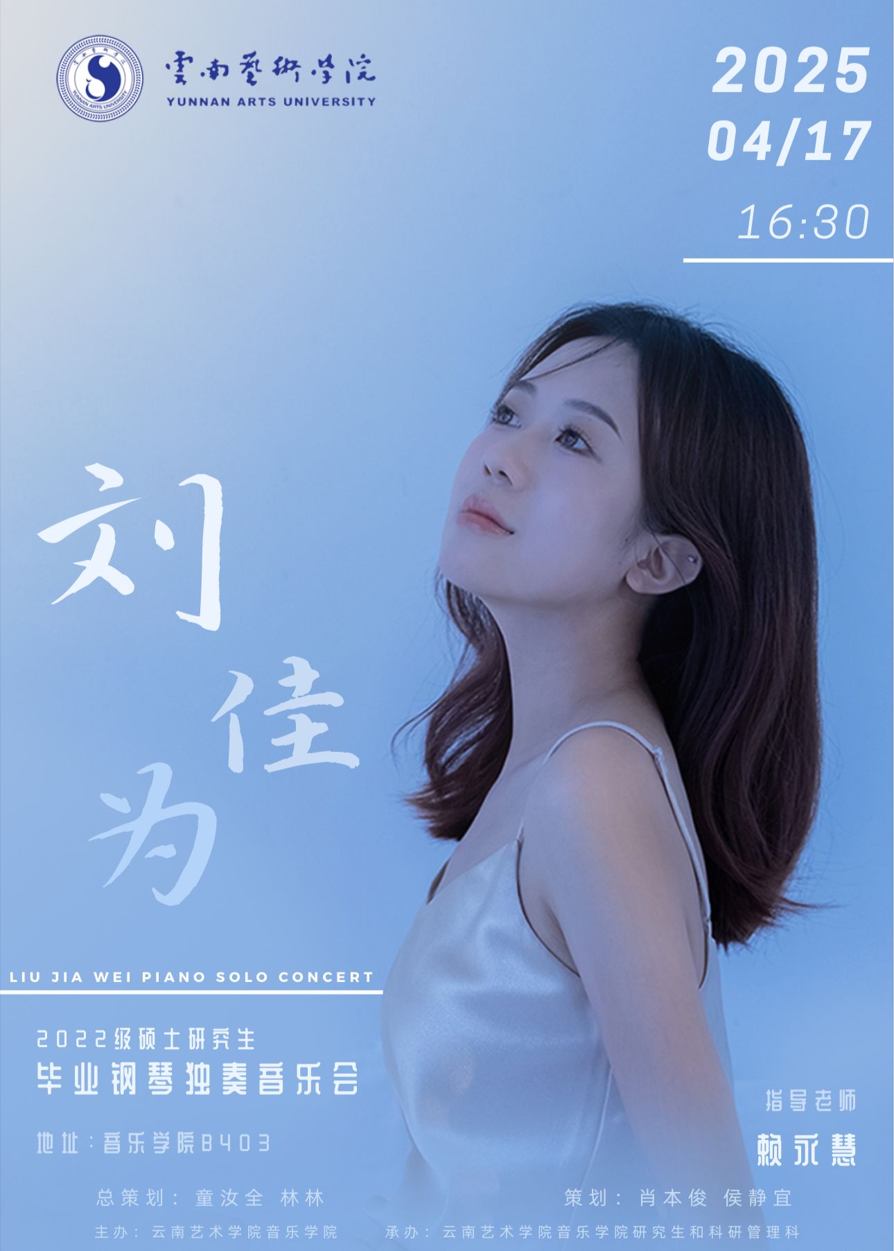 刘佳为 2022级硕士研究生毕业钢琴独奏音乐会