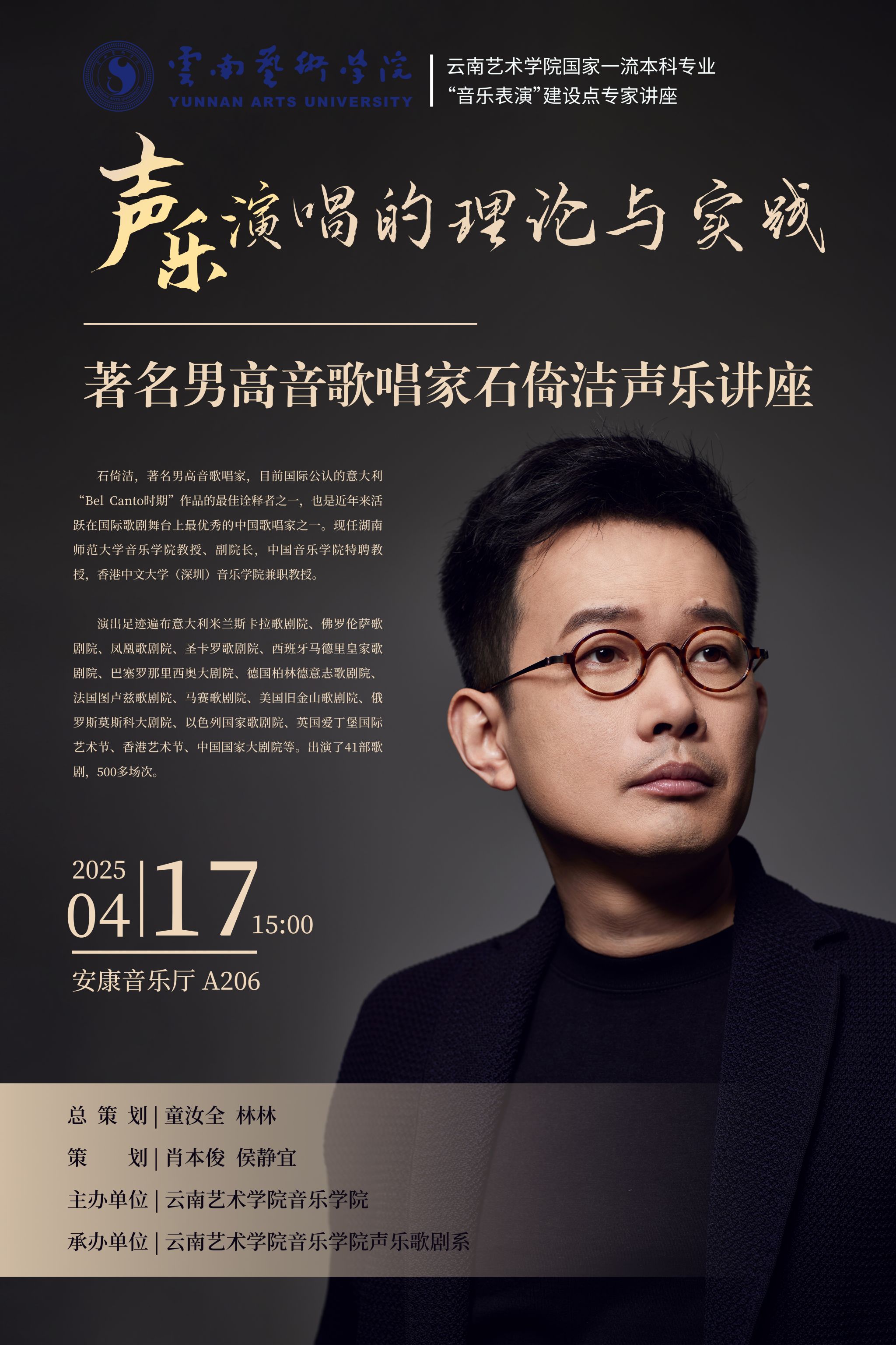 声乐演唱的理论与实践——著名男高音歌唱家石倚洁声乐讲座