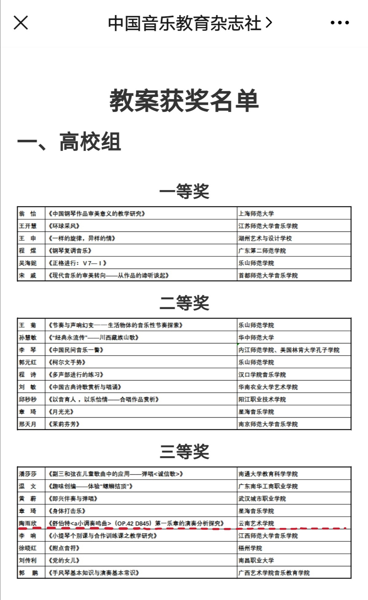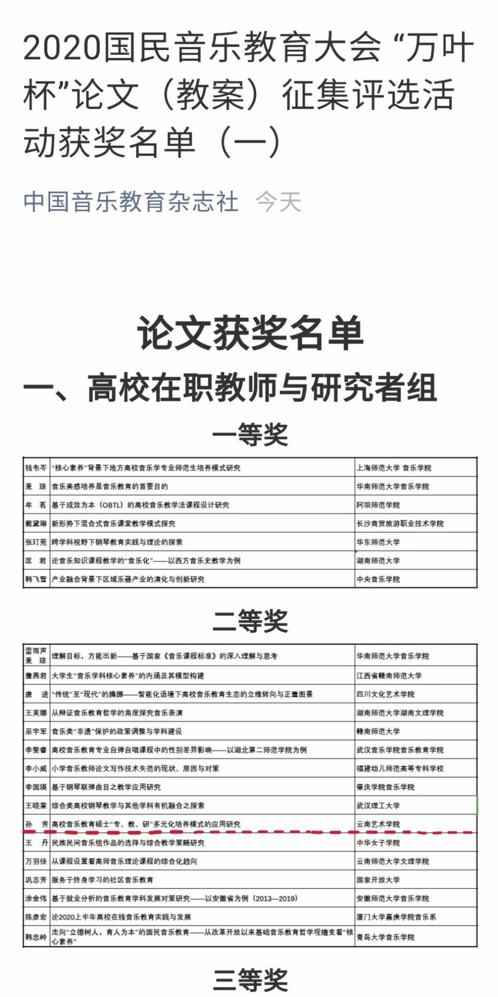 2020年国民音乐教育大会于10月29日在上海新国际博览中心开幕,滚球买球的app官网音乐教育系师生代表参加了此次盛会,与全国音乐教育专家学者进行学术探讨和交流。在此次大会中,由中央滚球买球的app官网、中国乐器协会、《中国音乐教育》杂志社、全国音乐教育联盟等联合主办的“万叶杯”论文(教案)评选,全国二百多所院校师生提交1800多篇论文参评,是近年来中国规模最大的音乐教育论文评奖。经过音乐教育权威专家组的层层选拔,仅有30余位教师及学生获得奖项。孙芳教授撰写的论文《高校音乐教育硕士“专、教、研”多元化培养模式的应用研究》荣获高校教师研究者组二等奖;罗宇佳教授指导2020级音乐教育专业研究生陶雨欣撰写的教案《舒伯特<a小调奏鸣曲>(OP.42 D845)第一乐章的演奏分析探究 》荣获高校教案组三等奖。