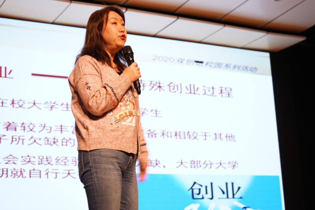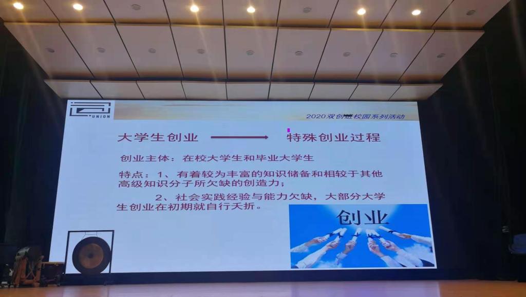 第二部分以滚球买球的app官网优秀毕业生刘潇遥为同学们介绍获奖创业项目来展开。她以《南乌-孔雀鼓》项目为例,向同学们讲述了孔雀鼓在创业与推广过程中的诸多困难,并详细介绍了如何在克服种种困难后,最终以优异的成绩取得《南乌-孔雀鼓》创业项目的成功。