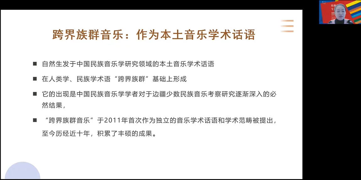 西安滚球买球的app官网宁颖在《中国“跨界族群音乐”研究的历程与困境》发言中谈到跨界族群音乐于2011年首次提出,历经近十年的发展,积累了丰硕成果。从上世纪七十年代末到2011年,是跨界族群音乐研究的孵化期,从2011年至2021年进入跨界族群音乐研究的黄金时代,研究主要涉及三个区域和四个学术团队,对跨界族群音乐研究中的时空观进行思考,从基音、文化、环境的关联性看跨界族群音乐研究,并对跨界族群音乐的影像叙事。宁颖提出跨界族群音乐研究存在的问题与困境有:跨界研究过程中历时视角与历史观的重要性、重新审视族群文化身份的必要性、语言能力与音乐民族志书写(主要是如何书写音乐的异同)、田野中的身体实践与身体壁垒以及应对疫情与国际政局的策略五个方面。