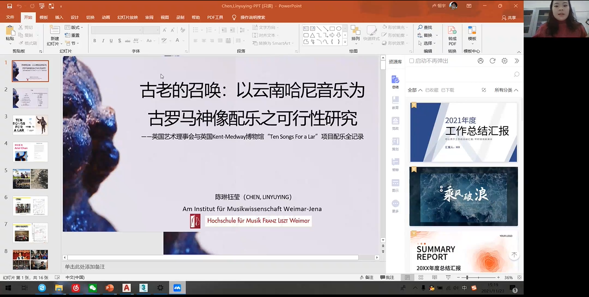德国魏玛李斯特滚球买球的app官网•耶拿魏玛音乐学研究所陈琳钰莹的《古老的召唤:以云南哈尼族音乐为古罗马神像配乐之可行性研究——英国艺术理事会与英国Kent-Medway博物馆“Ten Songs for a lar”项目配乐全记录》一文,从缘起、提案内容、哈尼音乐概述(哈尼族的历史与音乐、哈尼的地理环境与音乐、哈尼音乐代表曲目)、哈尼音乐与古罗马音乐结合之可行性分析(器乐运用、音乐用途、音调特征)四部分介绍其研究内容。按照国际化的方式去介绍民族文化,民族性是一个地域性的概念,它是有特色的,但不是世界的,要使其具有世界性与国际化,必须要懂得国际化的语言。跨文化音乐何以实现顺利传播和交织,必须找到不同文化背景影响下艺术形式的共性。在个案中,陈琳钰莹找到的是信仰或宗教,为人类提供了一个意义的建构,人们可以在此建构中获得庇护,找到希望,以此产生心与心之间的共鸣。