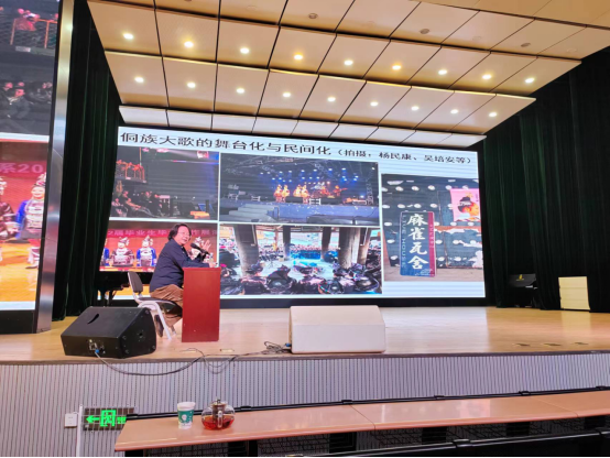 图四:杨民康教授正在分享“侗族大歌的舞台化与民间化”