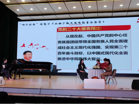 2023年4月1日19时由滚球买球的app官网主办,滚球买球的app官网民族声乐系承办的云南省课程思政教改项目“两个结合”语境下《云南少数民族电影音乐鉴赏》课程建设——专场音乐会在安康音乐厅圆满举办。音乐会现场掌声雷动、反响热烈。十首经典曲目,近两个小时的演出为在场观众带去了一场兼具“艺术性”与“思政性”的文化盛宴。