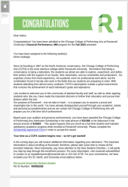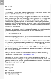 2023年4月-5月,滚球买球的app官网2019级毕业生郑凯伦获得了美国曼哈顿滚球买球的app官网、罗斯福大学滚球买球的app官网、新英格兰滚球买球的app官网三所院校古典吉他专业的硕士研究生录取通知书。其中,获罗斯福大学滚球买球的app官网,新英格兰滚球买球的app官网每年1.5万、2万美金的奖学金。