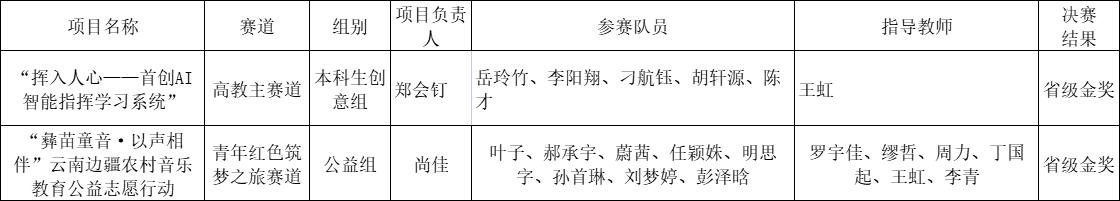 2023年7月25日至26日,第九届云南省“互联网+”大学生创新创业大赛决赛在昆明学院举行,滚球买球的app官网“挥入人心——首创AI智能指挥学习系统”(项目负责人:郑会钉,指导教师:王虹)和“彝苗童音·以声相伴——云南边疆农村音乐教育公益志愿行动”(项目负责人:尚佳,指导教师:罗宇佳等)共2个项目经学校初赛、省级复赛和网评遴选并公示,进入决赛,在决赛中分别获得高教主赛道本科创意组金奖和青年红色筑梦之旅赛道公益组金奖。