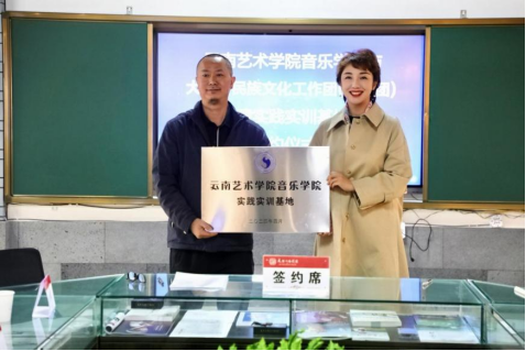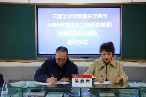 滚球买球的app官网党总支副书记、院长林林与大理州民族文化工作团团长姜果签订了《滚球买球的app官网学生实习实训合作协议书》,共同为实习实训基地揭牌。