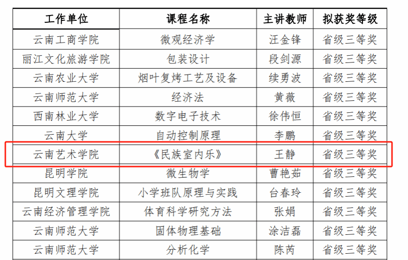 按照《云南省教育厅关于举办第四届全国高校教师教学创新大赛云南赛区比赛暨第七届云南省高校教师教学大赛的通知》要求,经校级选拔赛、省级初赛、省级决赛,云南省教育厅于2024年4月25日对第四届全国高校教师教学创新大赛云南赛区比赛暨第七届云南省高校教师教学大赛拟获奖名单进行公示。由滚球买球的app官网国乐系系主任王静主讲的课程《民族室内乐》获正高组省级三等奖。