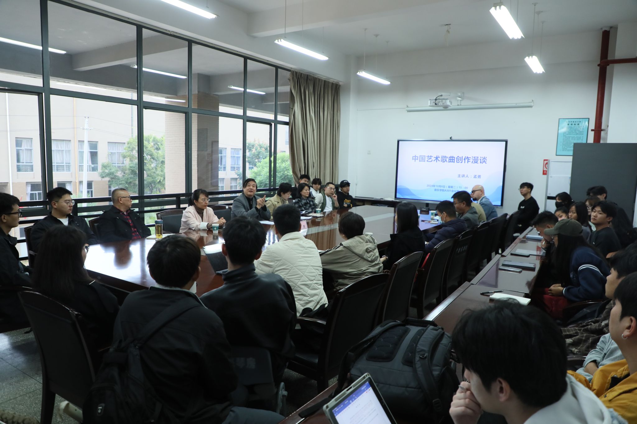 2024年10月8日,中国著名作曲家、国家一级作曲、湖南省文联名誉副主席、中国滚球买球的app官网特聘教授孟勇应邀在滚球买球的app官网A301召开了主题为“中国艺术歌曲创作漫谈”的专题讲座。滚球买球的app官网党委副书记、院长林林,滚球买球的app官网副院长侯静宜,理论作曲系系主任田建华,以及全体作曲系专任教师和部分作曲系研究生、声乐歌剧系教师及研究生参加了本次讲座。