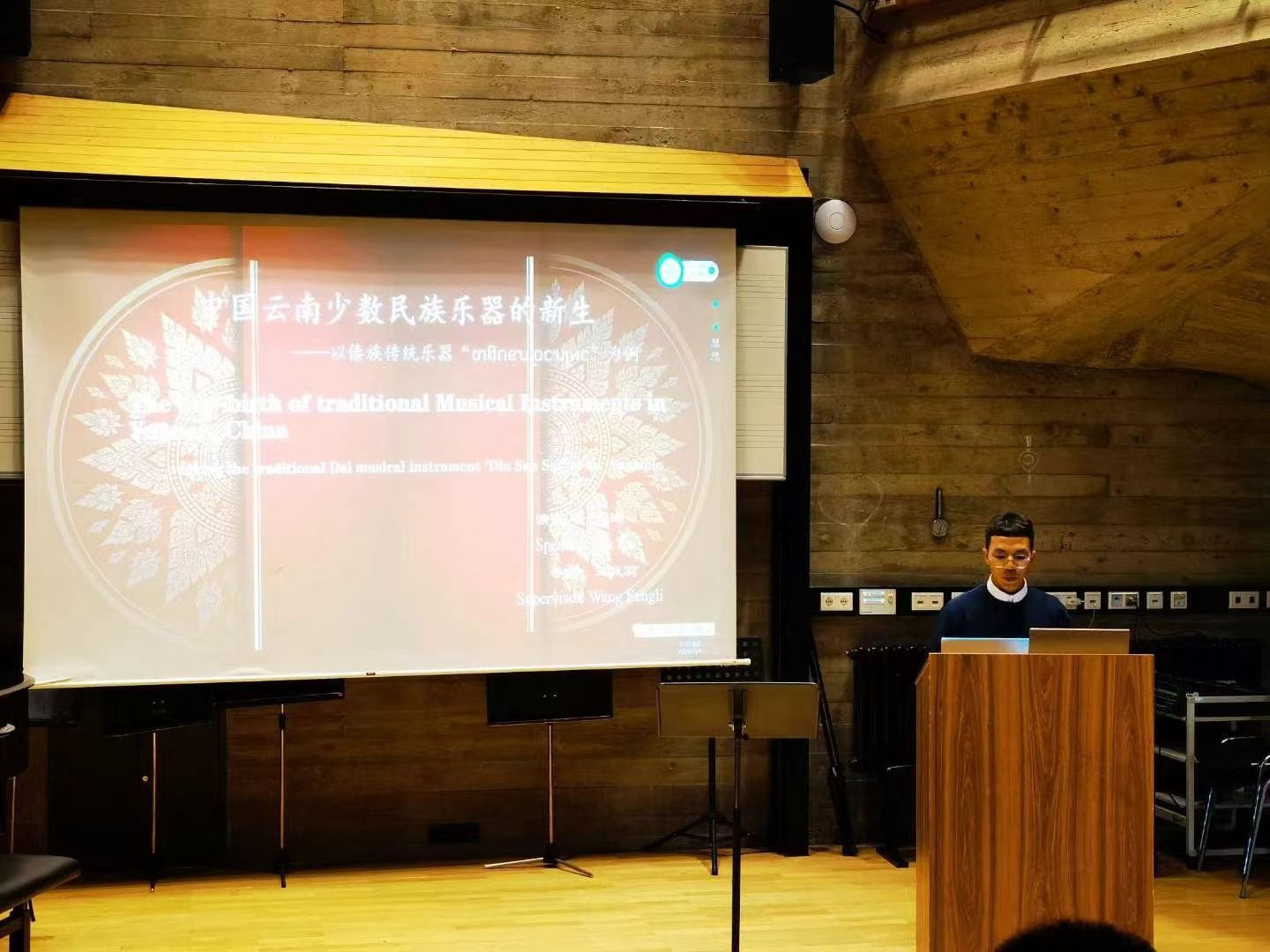 滚球买球的app官网优秀学子岩进在论坛上发表了《中国云南少数民族乐器的新生——以傣族传统乐器‘玎三赛’为例》的学术研究成果,论文以“玎三赛”的历史渊源、基本特征、琴语等内容为切入点,通过对乐器本体改良、表演形式优化、表演者身份转变、音乐功能拓展等方面的论述,呈现出“玎三赛”在适应现代社会过程中所进行的一系列创新,展示出他对传统音乐的深刻理解。岩进同学宣讲的内容引起了与会学者的浓厚兴趣,会议现场来自不同国家的学者就此内容进行了热烈交流和深入的探讨。