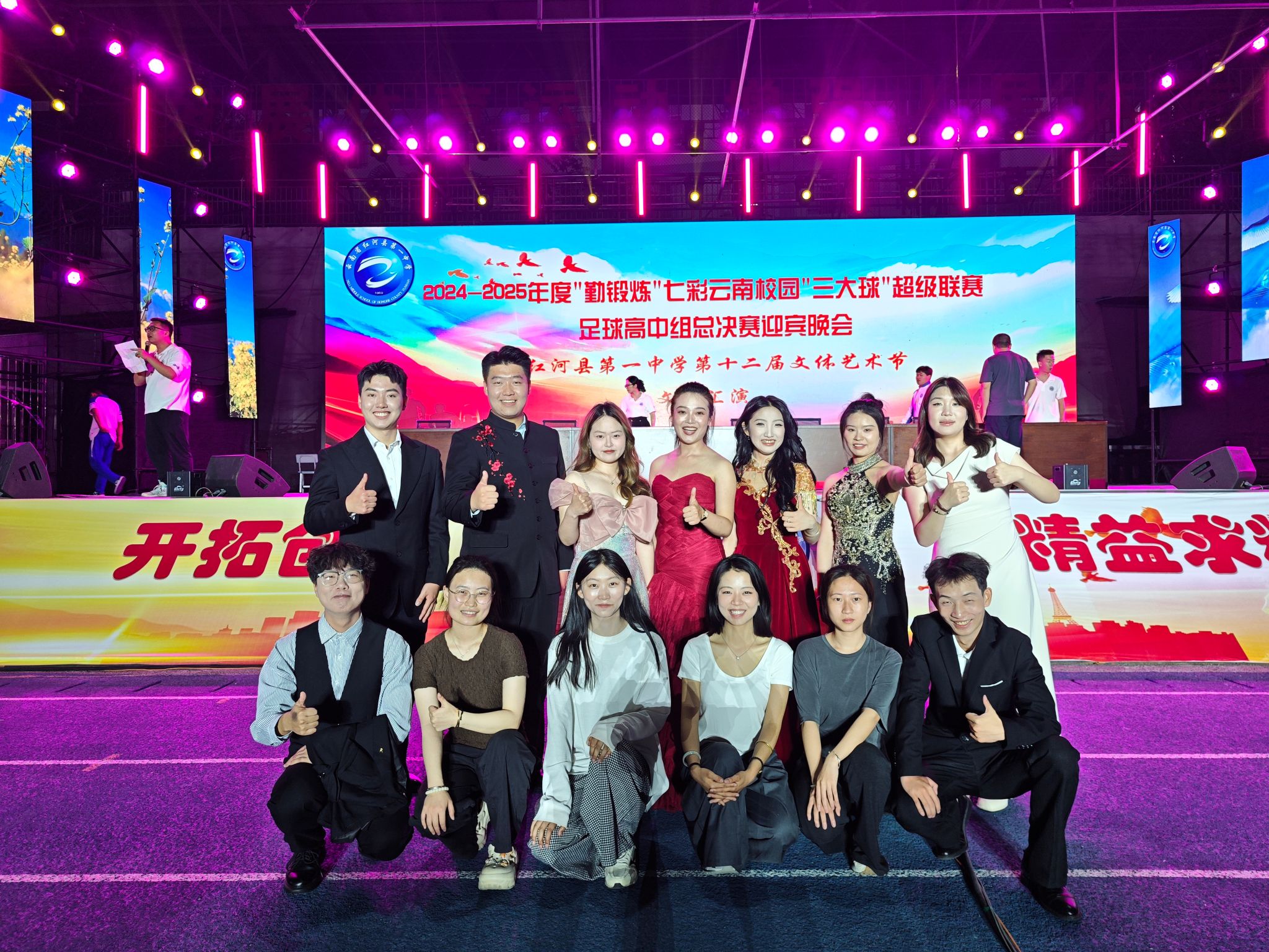 2025年4月25日,由云南省教育厅、云南省体育局、云南广播电视台和云南省学生体育协会主办,滚球买球的app官网与红河县教体局、红河县第一中学联合承办的《2024-2025年度“勤锻炼”七彩云南校园“三大球”超级联赛足球高中组总决赛迎宾晚会暨红河县第一中学第十二届文体艺术节》在红河县第一中学隆重举行。滚球买球的app官网"美育浸润计划"带队教师与支教学生以饱满的艺术激情与一中学生共同呈现了十余个精彩节目,并为26号超级联赛开幕式献上了励志歌曲《骄傲的少年》。