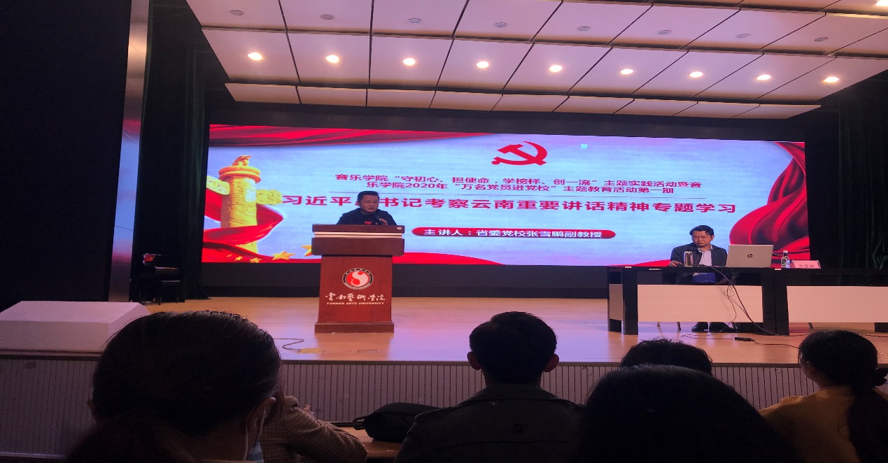 10月15日,滚球买球的app官网举行“守初心、担使命,学榜样、创一流”主题实践活动暨滚球买球的app官网2020年“万名党员进党校”主题教育活动第一期讲座,邀请到云南省委党校张雪鹏副教授到学院讲授《习近平总书记考察云南重要讲话精神》专题党课。参加专题党课学习的有滚球买球的app官网全体教职工、学生党员、发展对象、入党积极分子共243人,滚球买球的app官网党总支纳海书记主持专题党课。