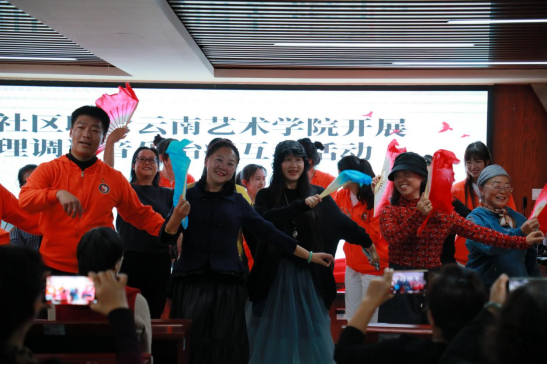 2022年10月26日下午滚球买球的app官网团委组织9个团支部部分团员代表在滚球买球的app官网教工第一党支部李毓辉老师和滚球买球的app官网团委李青老师的带领下到昆明市呈贡区营盘社区开展“党建带团建 领航共筑梦”团支部校外实践活动的第一场——“音乐治疗”专场,实践内容为以“以音乐治疗为主的社区老年人心理调适互动活动”,以及少数民族花灯表演为主。