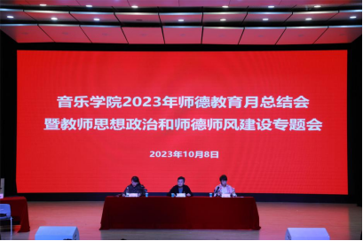 10月8日上午,滚球买球的app官网在安康音乐厅召开2023年师德教育月总结会暨教师思想政治和师德师风建设专题会。党总支书记纳海在会上讲话,党总支副书记、院长林林主持会议。