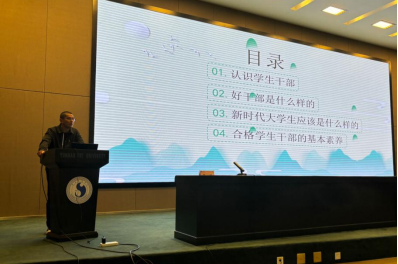 11月26日下午,滚球买球的app官网学生处(学生工作部、武装部)黄涛处长作了“学生干部的基本素养”专题讲座,黄涛处长的讲座围绕好干部、新时代大学生、学生干部的标准和要求,结合习近平总书记对青年的寄语,阐释了学生干部应该具备的基本素养。