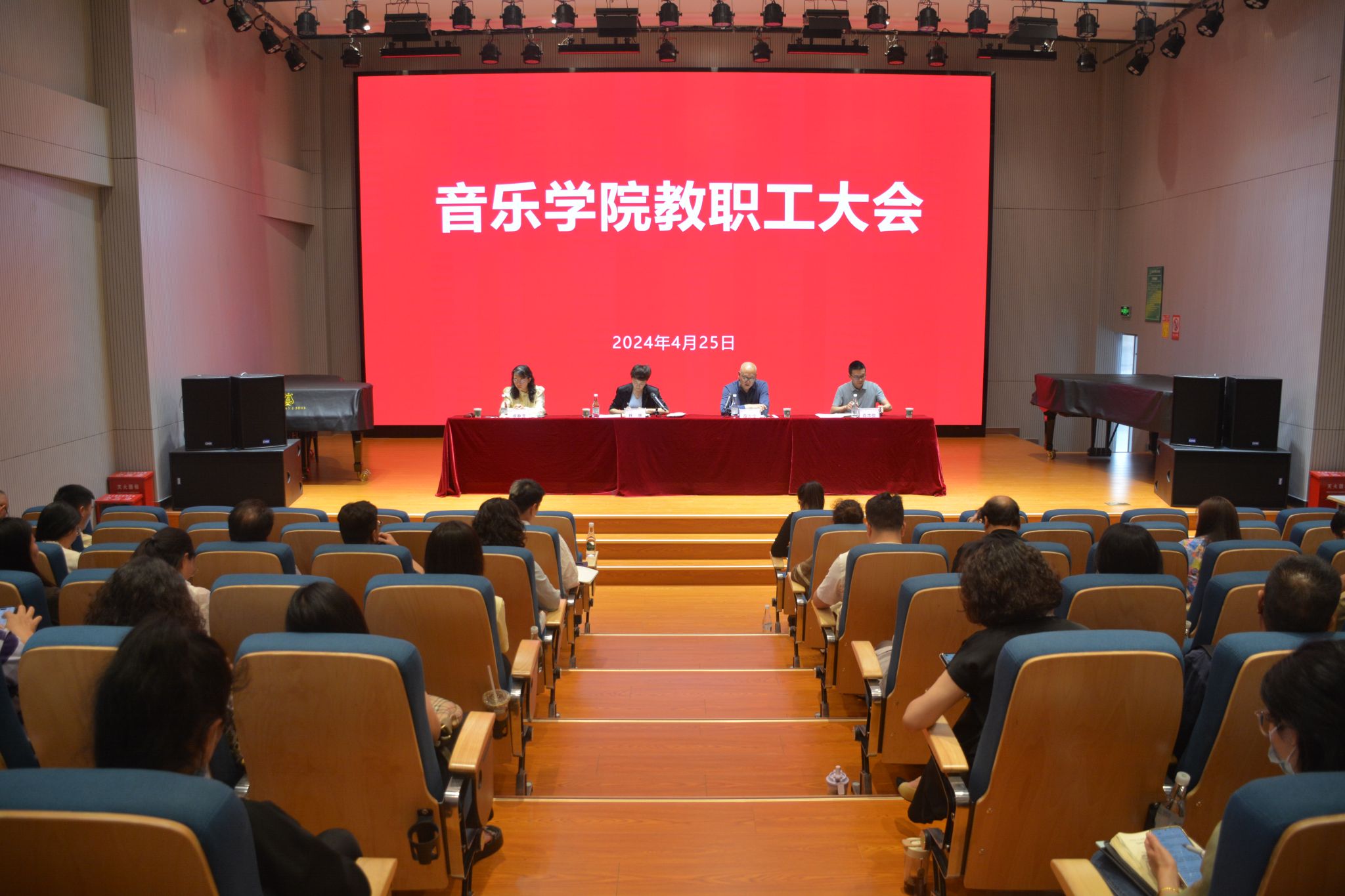 2024年4月25日13:00,滚球买球的app官网在B403音乐厅召开教职工大会。滚球买球的app官网全体教职工参加会议,会议由滚球买球的app官网党总支副书记、院长林林主持。