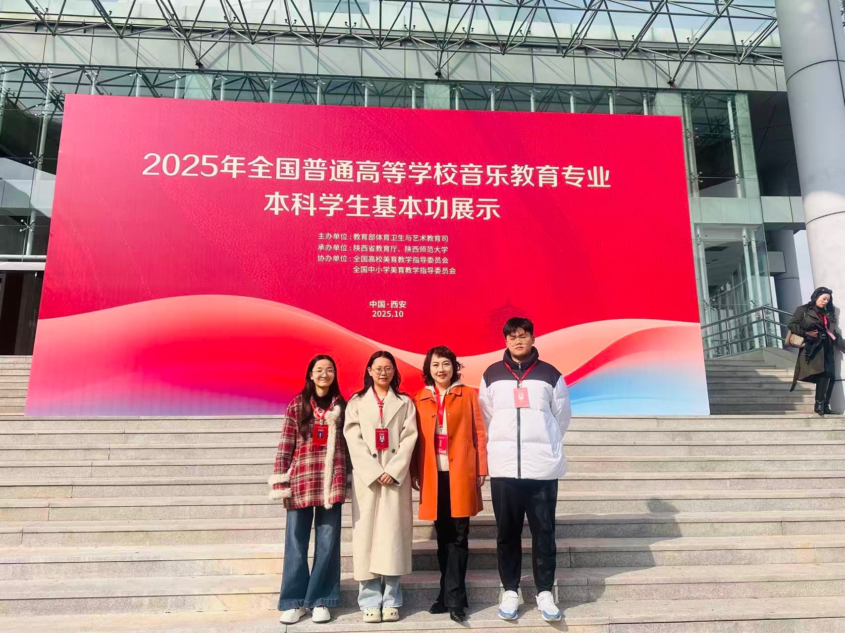 2025年全国普通高等学校音乐教育专业本科学生基本功展示由教育部体育卫生与艺术教育司主办,陕西省教育厅、陕西师范大学承办,全国高校美育教学指导委员会、全国中小学美育教学指导委员会协办。本次基本功展示于2025年10月26日至10月30日期间在陕西师范大学长安校区举办,作为全国高校音乐教育领域高规格、具有权威性与影响力的交流展示平台,吸引了来自全国31个省(区、市)及新疆生产建设兵团93所高校的89名指导教师、267名学生参赛。展示分学生组与教师组,学生组涵盖教学展示(微课)、即兴弹唱、合唱指挥、自选项目(器乐、舞蹈、戏曲、戏剧);教师组包含现场说课、审美和人文素养展示、专业技能展示(声乐演唱、钢琴演奏、中外乐器演奏、指挥、即兴弹唱)、社会实践等内容,全面考察师生综合能力,充分体现音乐教育专业“教”“艺”并重的核心理念。