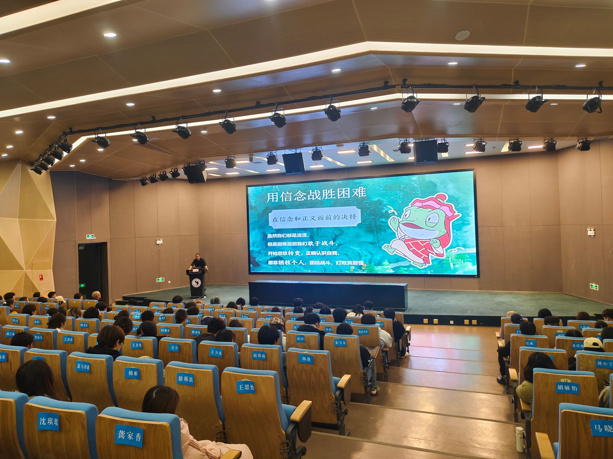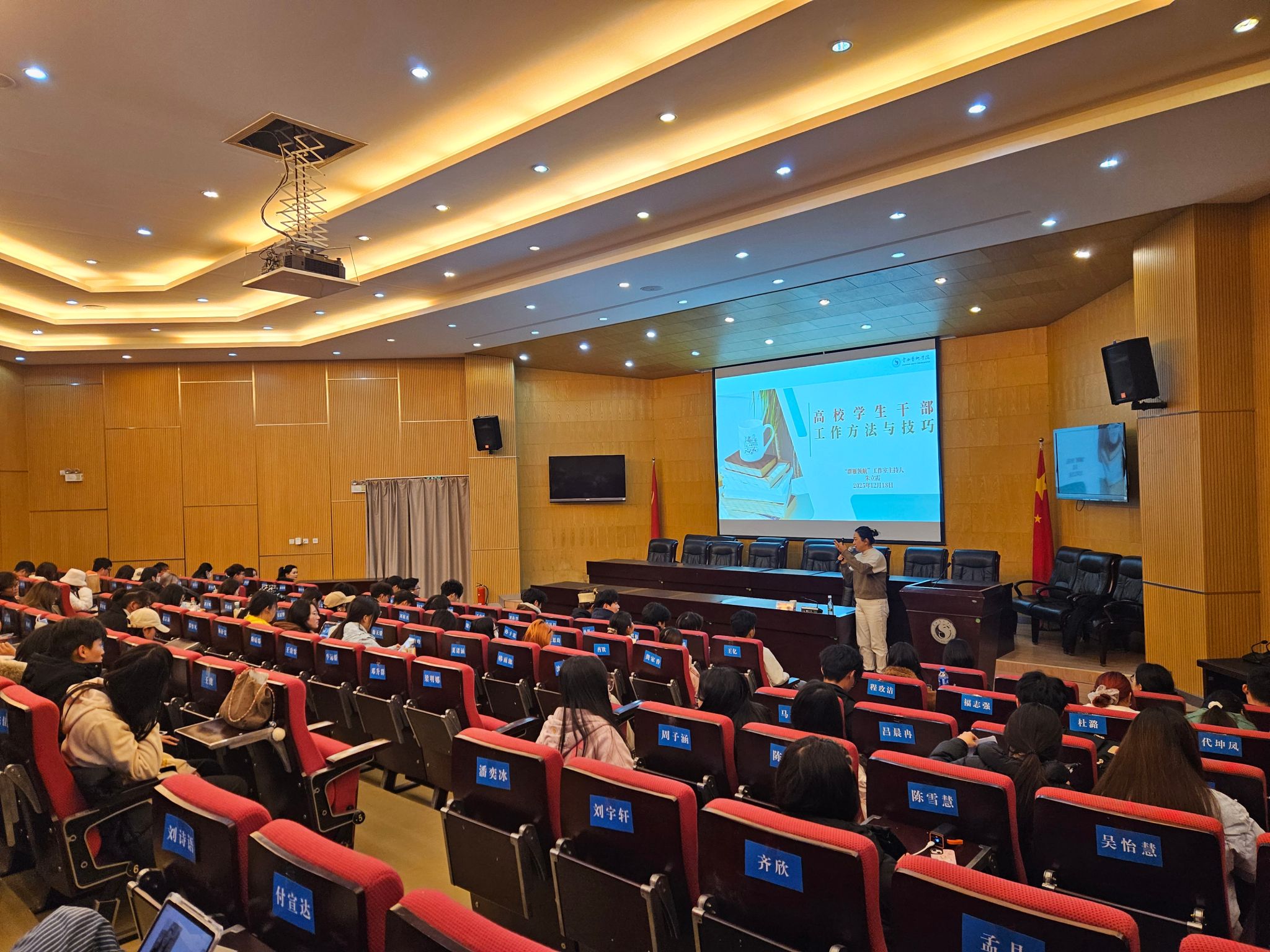 12月19日18:00,学生处(学生工作部、武装部)处长黄涛老师作《学生干部的基本素养》专题讲座。黄老师以“每个人都能走出自己的浪浪山”为切入点,通过互动问答和情景回顾,引导学生深入思考求学目标、成才方向与人生规划,强调学生干部要在服务同学中锤炼自我,发挥示范引领作用,锤炼品德修为,强化责任担当,真正做到心中有信念、肩上有责任、手中有方法。讲座尾声,滚球买球的app官网党委书记童汝全老师在总结讲话中指出,大学是世界观、人生观、价值观形成的关键时期,学生干部更应珍惜时光,注重综合能力的全面提升,在思想、学业和日常行为中做出表率,努力成为自立自强、德才兼备的旗帜和标杆。