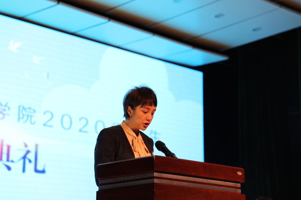 首先,由教师代表王凤莉老师发言,她代表滚球买球的app官网全体教师对来自五湖四海的新同学们表示热烈的欢迎。她期盼全体新生在滚球买球的app官网开展全新的学路历程的同时能够做到明确目标、志存高远,脚踏实地,能够做到面对挑战,勇于追求理想,砥砺前行,能够相互欣赏、彼此成就,携手谱写精彩的人生乐章。
