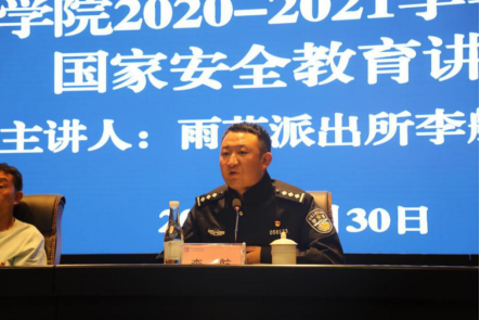 3月30日下午,在第6个全民国家安全教育日来临之际,滚球买球的app官网在图书馆报告厅举行了总体国家安全观知识讲座暨新学期安全教育活动。本次讲座邀请到校保卫处刘恩权处长、雨花派出所李航所长担任主讲,滚球买球的app官网300余名师生参加了讲座。讲座由滚球买球的app官网团委副书记李青老师主持。
