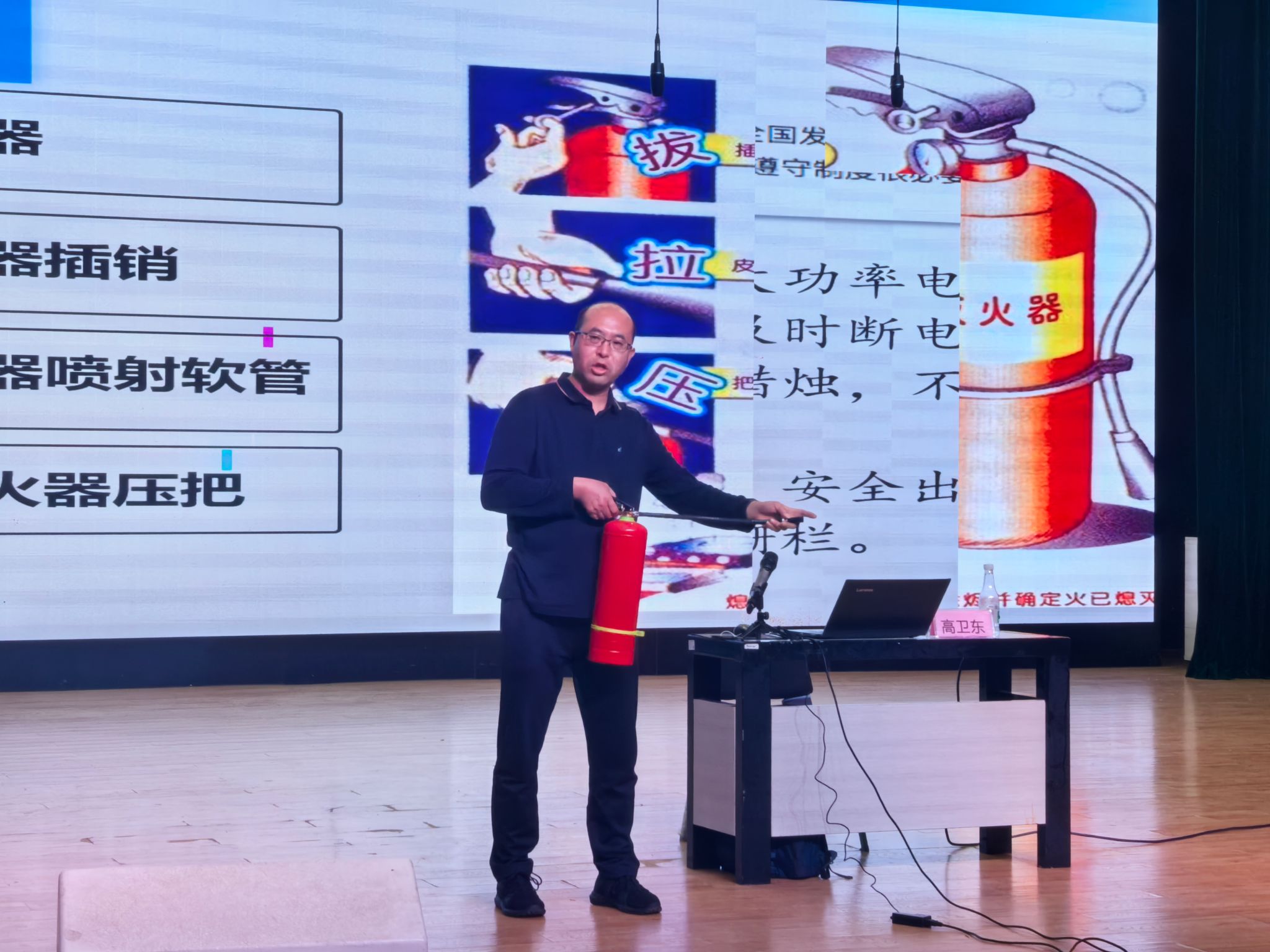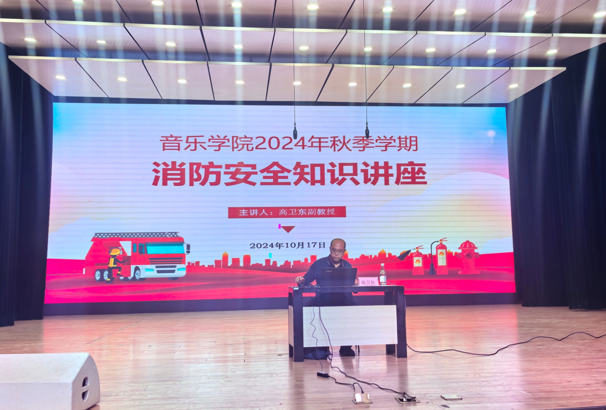 讲座中,高卫东副教授结合近年来的火灾案例,介绍了消防安全的规章制度,讲授了火灾应急处置与预防、疏散逃生、消防器材使用方法等消防知识,重点对校园宿舍、食堂发生的火情、火灾的应对方法进行了详细讲解。通过案例分析与启示,以“血的教训”引起同学们对消防安全的重视,自觉维护校园消防安全。