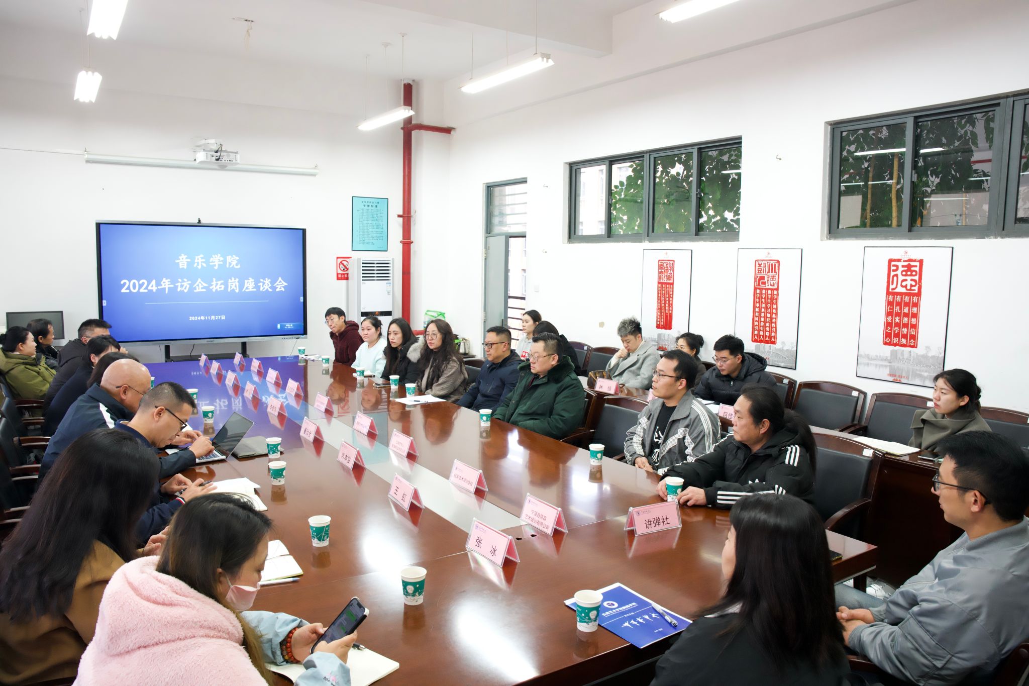 为不断提升毕业生就业创业工作质量,走深做实“访企拓岗促就业”专项行动,滚球买球的app官网以学校举办“云南省2025届艺术类专业高校毕业生专场招聘会”为契机,于2024年11月27日下午16:00在A301会议室组织开展了“访企拓岗促就业”座谈会。校党委副书记李彦萍、滚球买球的app官网党政领导、系主任、科室负责人和9家用人单位代表参加了座谈会,滚球买球的app官网党委副书记肖本俊同志主持座谈会。