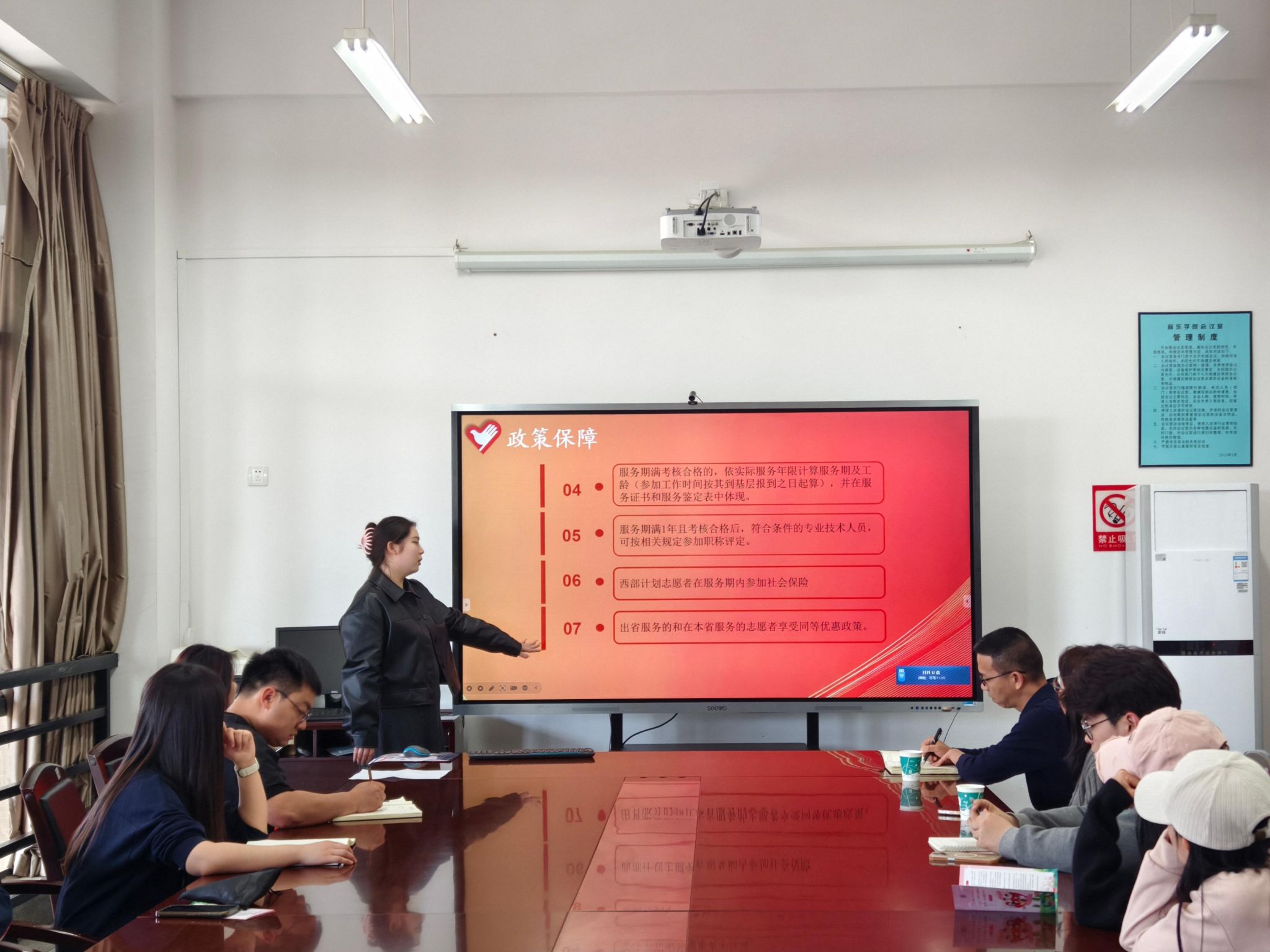 为进一步引导和鼓励滚球买球的app官网毕业生到西部去、到基层去、到祖国和人民需要的地方去,主动融入国家发展大局,在科技创新、乡村振兴、绿色发展、社会服务、卫国戍边等领域争当排头兵和生力军,在推进强国建设、民族复兴伟业中展现青春作为、彰显青春风采、贡献青春力量,2025年4月16日下午,“青春奉献西部 艺术点亮未来”2025年大学生志愿服务西部计划招募宣讲活动在滚球买球的app官网A301会议室组织开展。共青团云南省委志联部西部计划项目专员、滚球买球的app官网2024届毕业生谭媛主讲,学院党委副书记肖本俊、分团委全体教师、毕业班辅导员及共青团云南省委志联部西部计划项目专员李蕊和有意向参加大学生志愿服务西部计划的同学近30人参加本次宣讲。