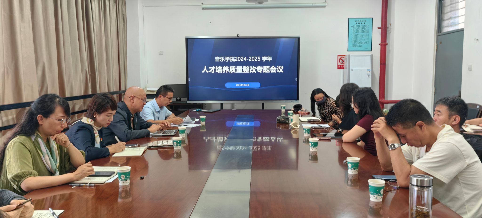 2025年9月22日下午,滚球买球的app官网在音乐楼A301会议室召开了2024-2025学年人才培养质量整改专题会议,会议由滚球买球的app官网副院长侯静宜主持,滚球买球的app官网党政领导班子、各系系主任、专业负责人、教学管理科科长、学生管理科科长、教师代表及学生代表参加了会议。