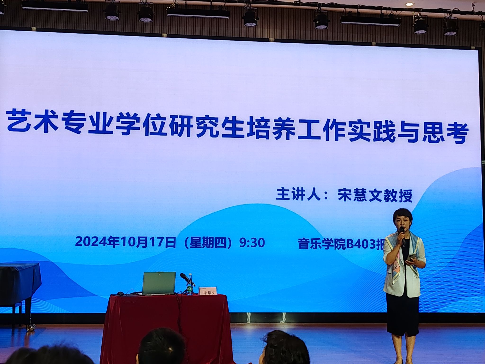 2024年10月17日上午9时30分,滚球买球的app官网研究生学位点合格评估专家系列讲座之——《艺术专业学位研究生培养工作实践与思考》,在滚球买球的app官网B403报告厅成功举办。本次讲座特邀全国艺术专业学位研究生教育指导委员会秘书长、中央滚球买球的app官网学位管理办公室主任宋慧文教授主讲,滚球买球的app官网院长林林教授主持。