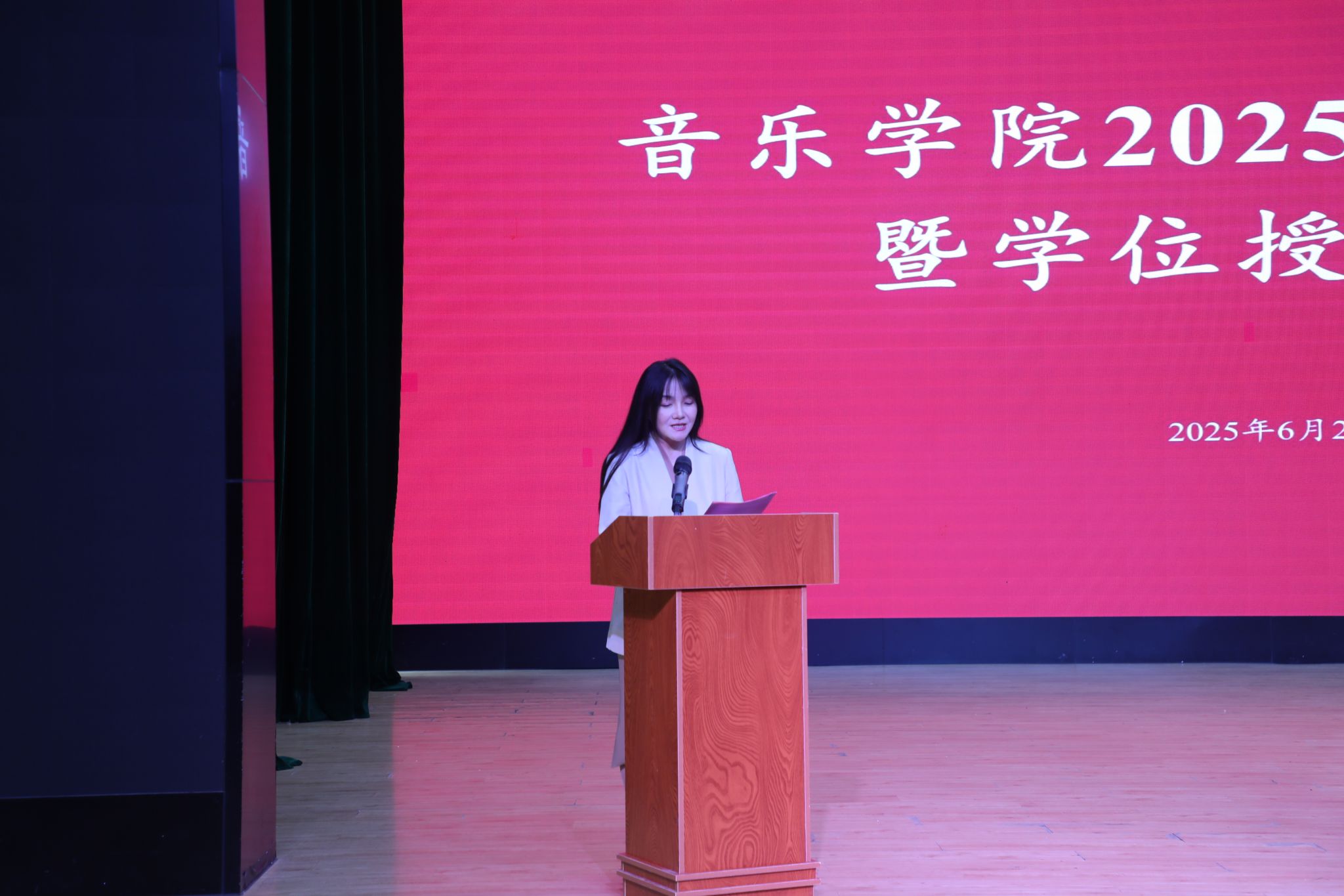 杨丽霞老师作为教师代表发言,她希望毕业生永远铭记云艺赋予的底气与信念:无论身处何方,都明确内心的“主旋律”,做自己人生的卓越“指挥家”;在追求个人卓越的同时融入时代,倾听社会的声音,理解他人的旋律,永葆“交响思维”;让音乐之光恒久闪耀,照亮前路也温暖他人。