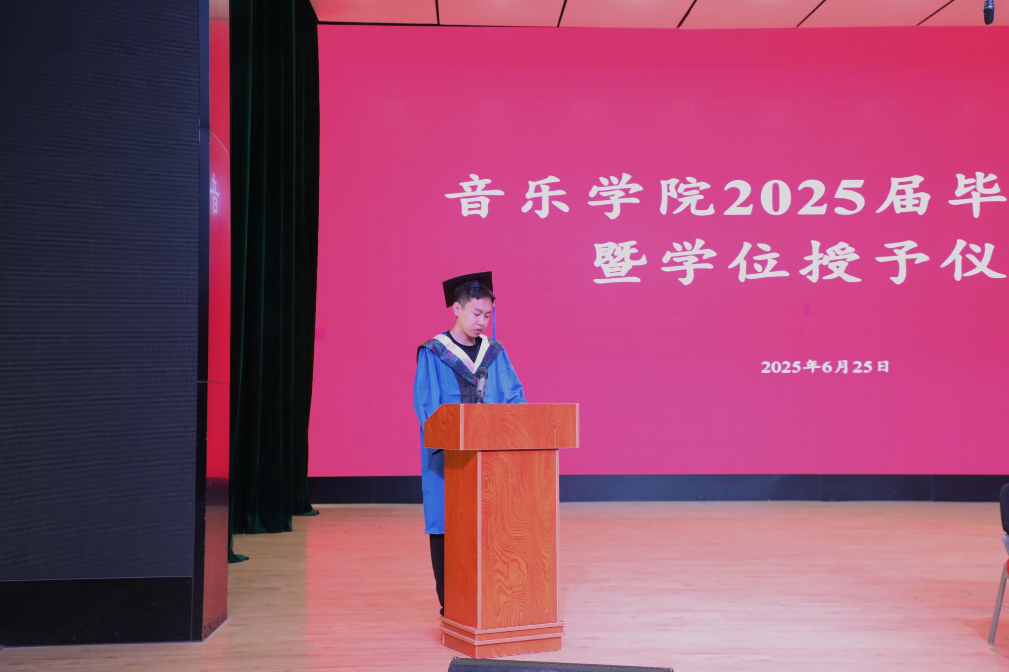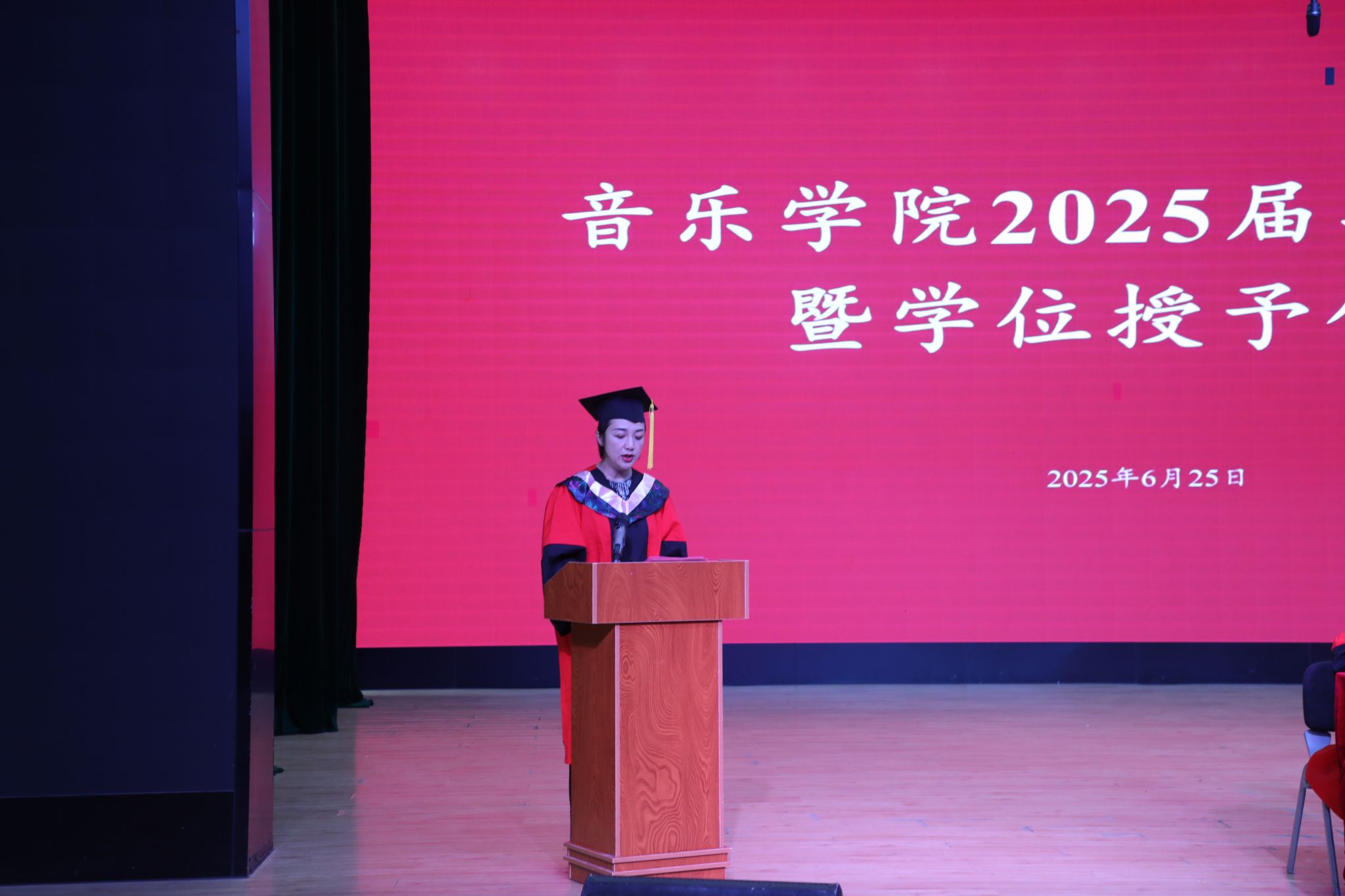 2025年6月25日上午,滚球买球的app官网2025届毕业典礼暨学位授予仪式在安康音乐厅举行。滚球买球的app官网党政领导、教学系主任、行政科室负责人,硕士研究生导师、毕业班班主任、专业教师代表、家长代表以及2025届全体毕业生参加。典礼由党委副书记肖本俊主持。